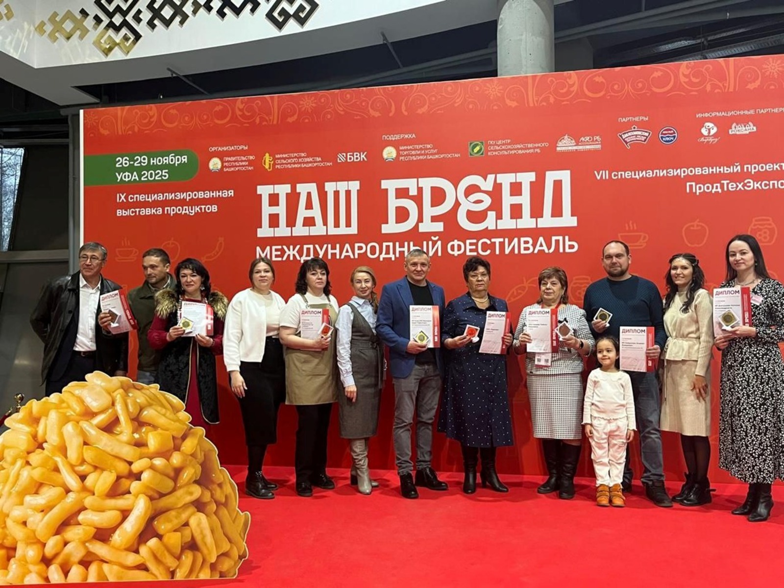Урожайным на престижные награды фестиваль «Наш бренд» стал для представителей Стерлитамакского района. Из девяти наград, присуждённых нашим предпринимателям, семь – высшего качества. Среди награждённых дипломом 1-й степени и золотой медалью СПССК «Калинушка» (председатель А.В.Коваленко) – за кефир 3,2-процентный и сыр голландский; «Коптильный дворик» (ИП Исаев Д.А.); ИП Хайруллин А.А. – за подсолнечное масло; ИП Ишмияров А.Р. – за грибы шампиньоны; ИП Долгушева Н.А. – за торт «Снежный»; ТД «Рощинский» (Даминов И.Н.) – за колбасы и мясные деликатесы; ЛПХ Михайлова О.А. – за сыры молочные.