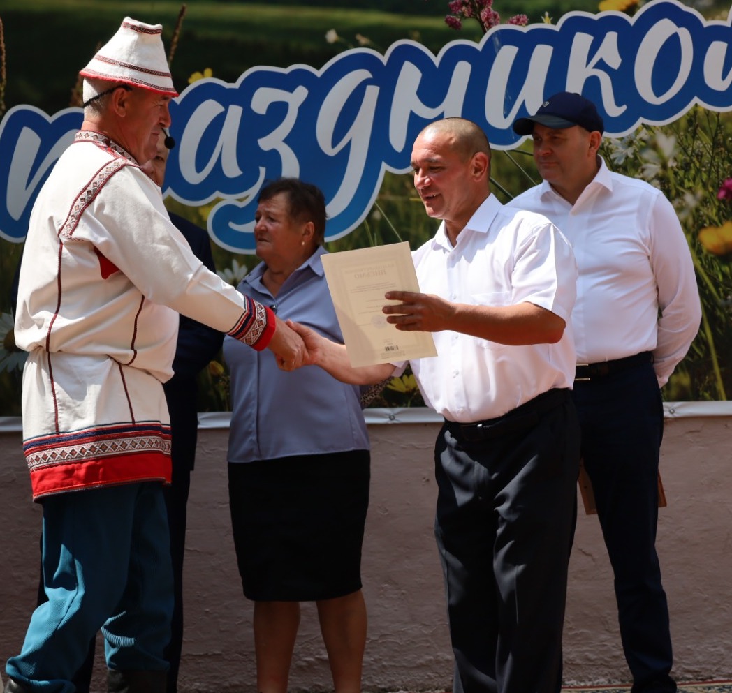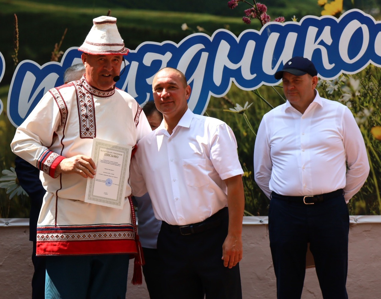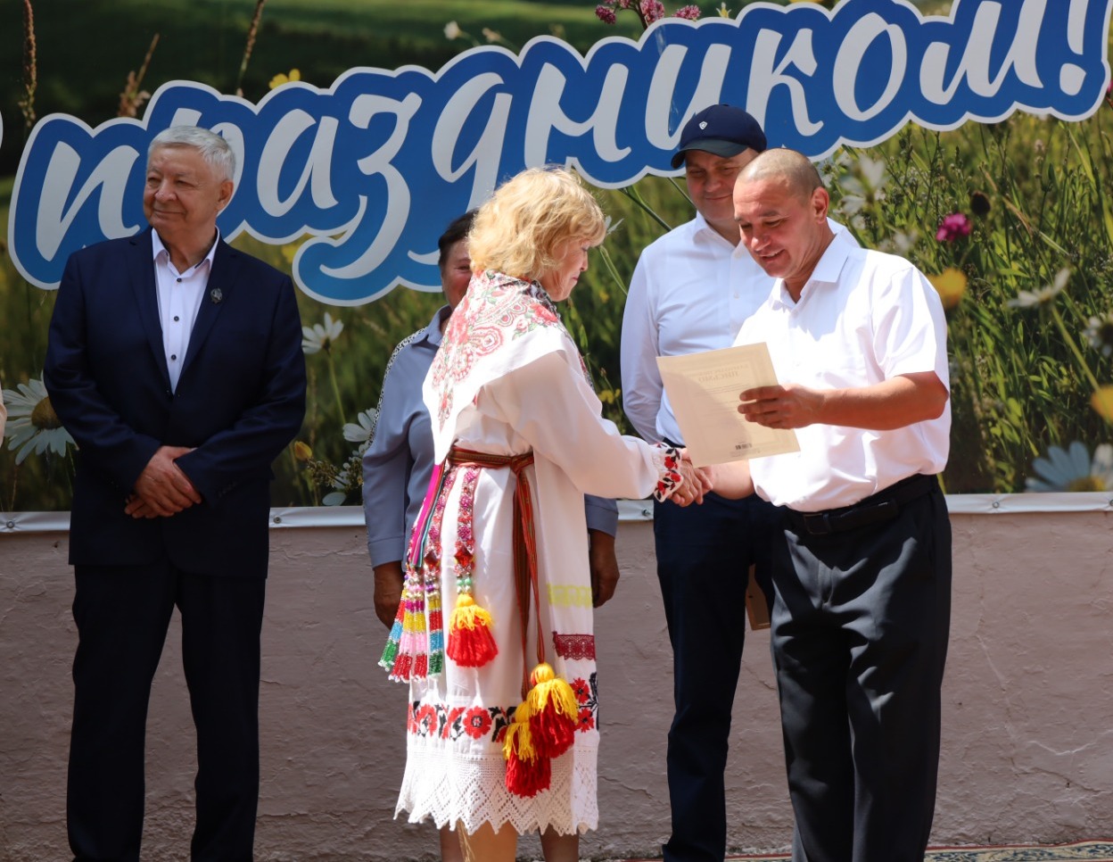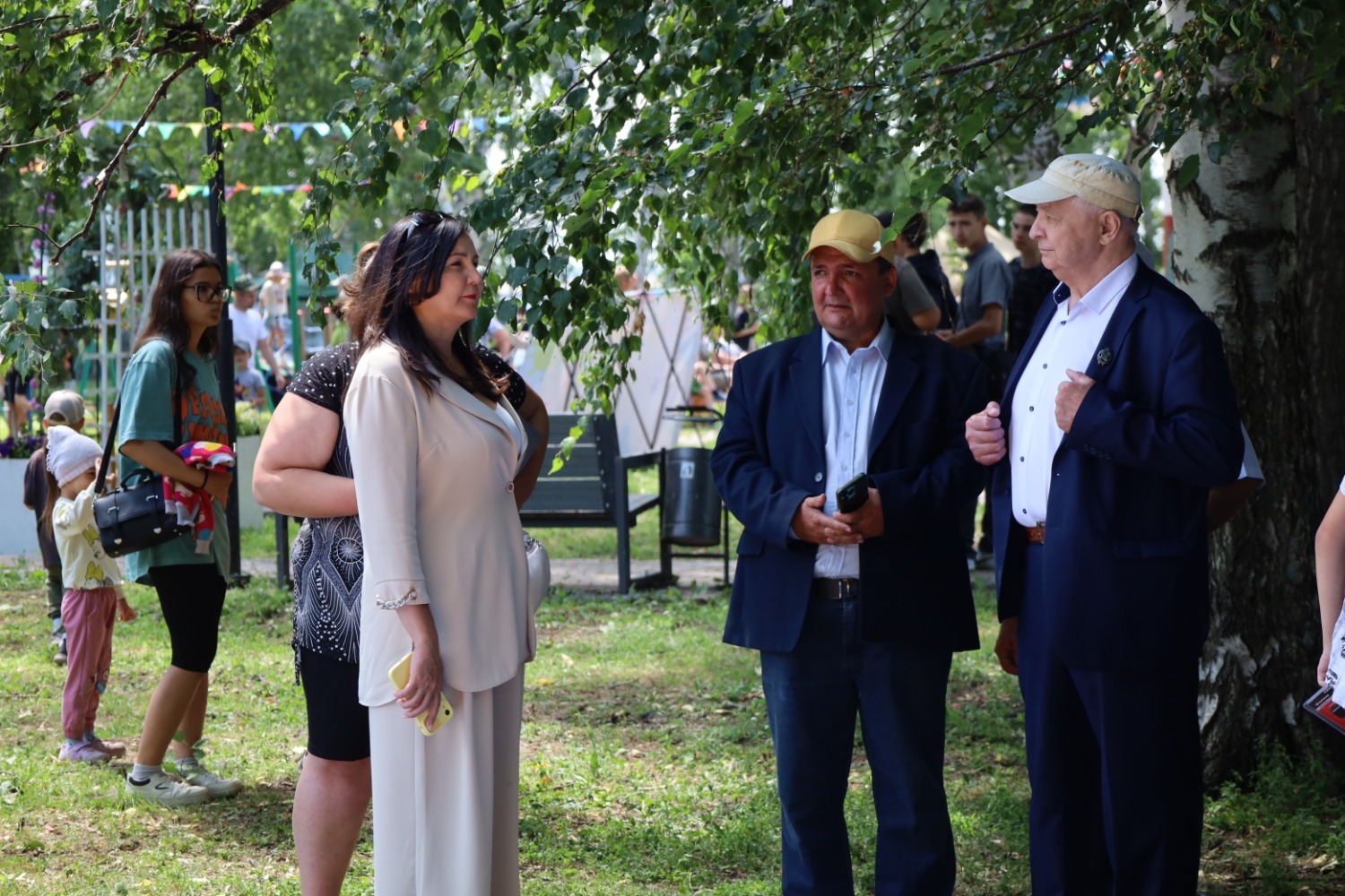 Ещё до начала праздника от души общался с сельчанами почётный гражданин района, заслуженный работник сельского хозяйства РБ и РФ Хайдар Хзырович Шагиев. А потом уже со сцены он обратился ко всем: «27 лет прошло с тех пор, как я уехал отсюда. Но всё, что тогда было построено, функционирует. Предприятие и коллектив сохранили. Благодарю за это вас всех и лично Сергея Леонидовича Козлова. Гордитесь своим хозяйством и продолжайте так же трудиться. Я сегодня успел десятки полей посмотреть: прекрасные хлеба созревают. Горжусь вами и поздравляю! Вы сохранили традиции, умеете отдыхать и работать».