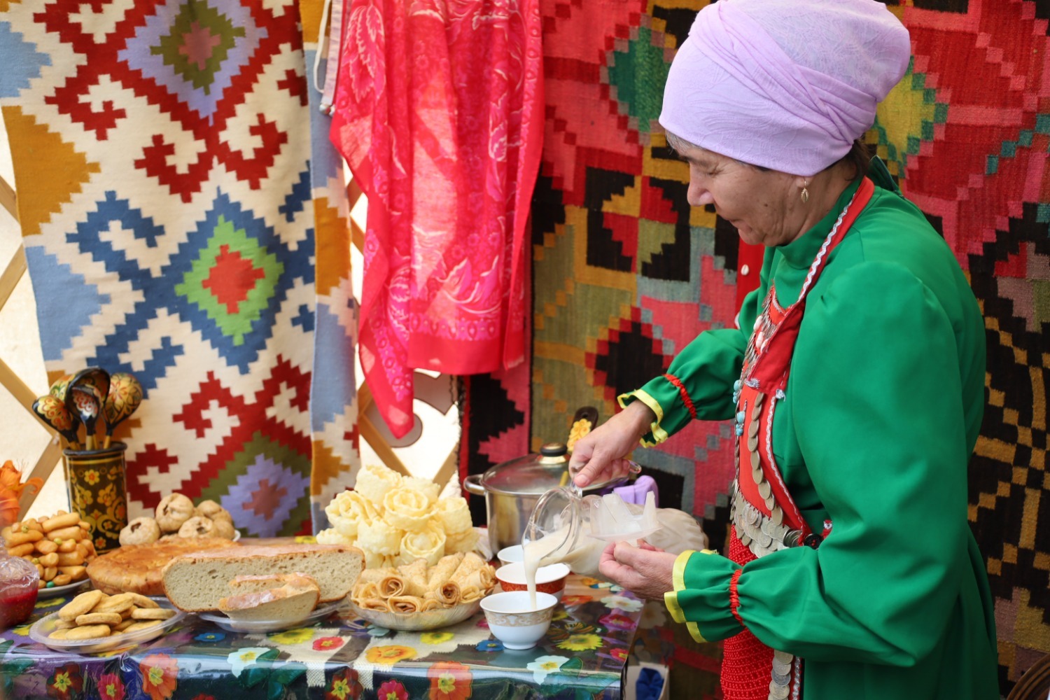 В гостеприимную татарскую юрту с ярким убранством (вышивками, блюдами национальной кухни) приглашали Разиля Назарова и Суфия Валиуллина. Была представлена и национальная русская кухня, предлагала отведать разные вкусности пекарь Елена Гиззатуллина. Как видим, сегодня село многонациональное и дружное.