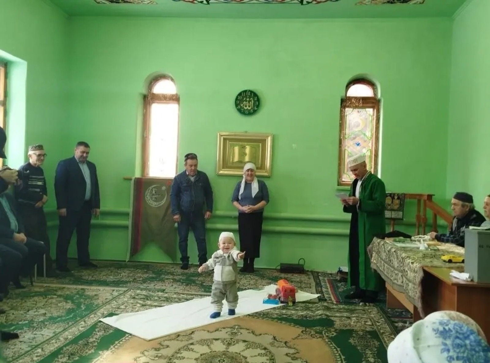 Мероприятие началось в местной мечети «Кифа», где собрались родные и близкие маленького Радима. Согласно традиции, ножки малыша аккуратно связали верёвочкой-жгутиком, свитой из нитей, символом временных ограничений младенчества. После этого отец бережно поддержал сына, помогая ему сделать первые символические шаги по белой дорожке - специальному полотну, означающему светлый и чистый жизненный путь. Мулла, которому выпала честь провести обряд, разрезал нити, «отпуская» ребёнка в большую жизнь. Действие завершилось общей молитвой с добрыми пожеланиями здоровья, счастья и долгой дороги для малыша.