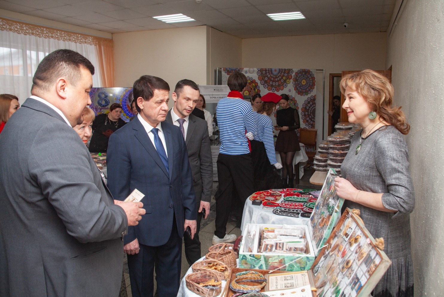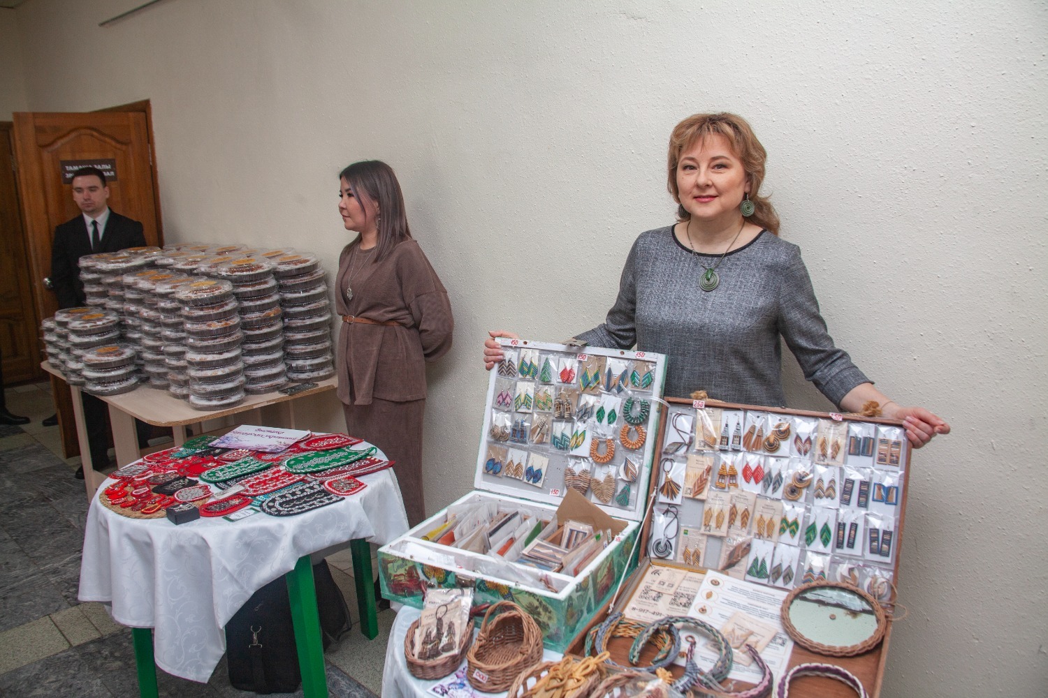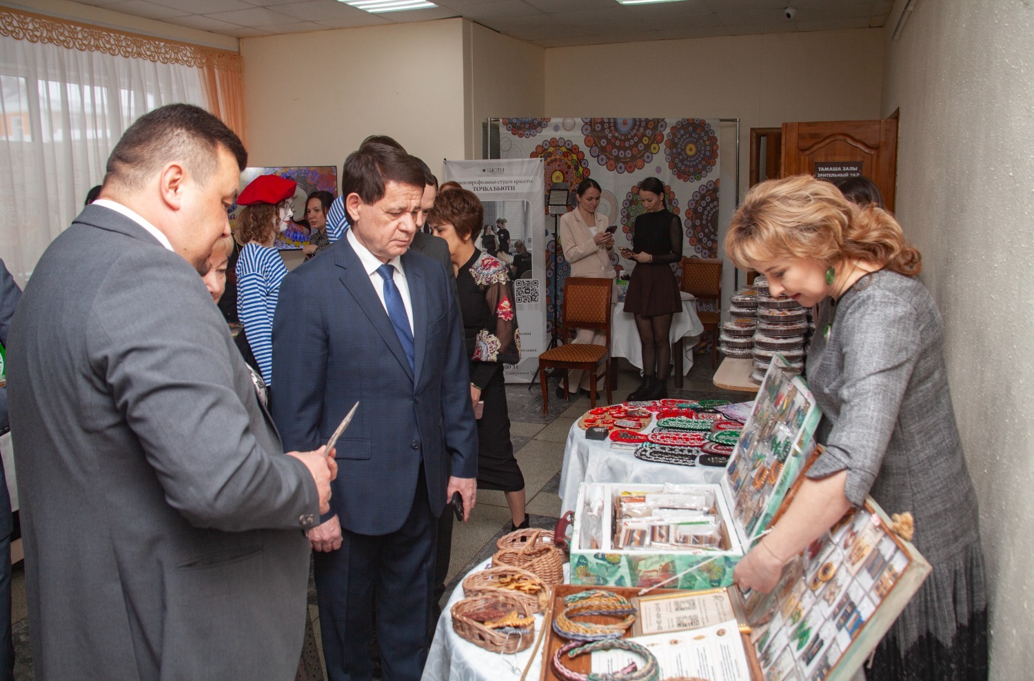 А в завершение гости могли заглянуть к мастерицам, которые представили украшения ручной работы с национальными мотивами. Здесь можно было приобрести серьги, колье, браслеты. Многие с интересом выбирали для себя или в подарок красивые и необычные изделия и общались с авторами.
