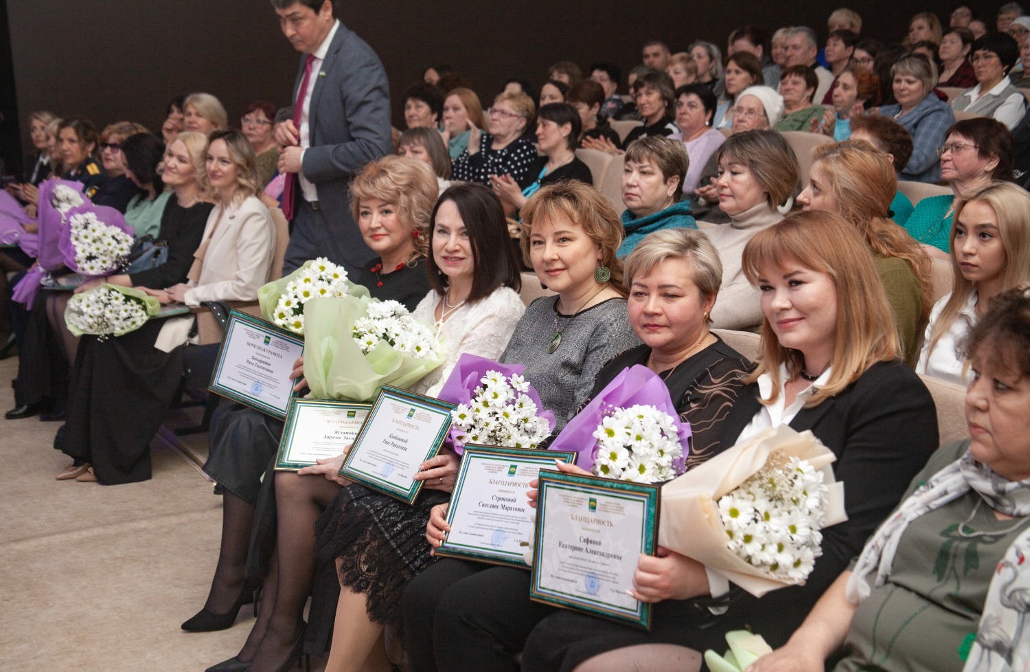 Одним из самых трогательных моментов праздника стала церемония награждения. На сцену пригласили матерей героев, участвующих в специальной военной операции. Их поблагодарили за достойное воспитание сыновей, за силу духа, стойкость и верность семейным ценностям. Зал встречал этих женщин стоя и аплодировал им особенно тепло.