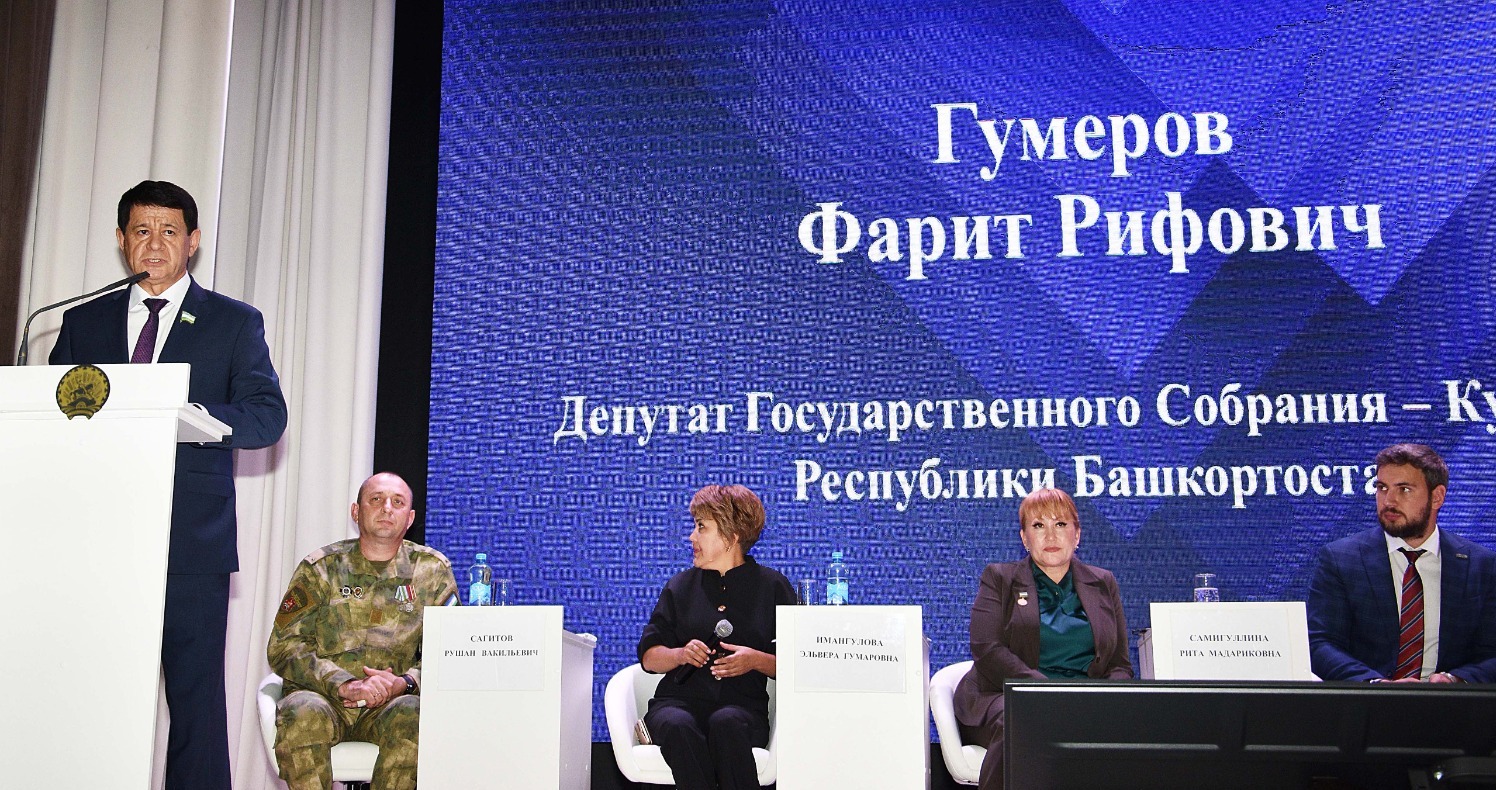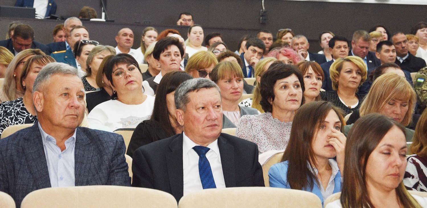 В работе августовской педагогической конференции приняли участие не только представители системы образования, но и широкого круга ведомств и структур, чья деятельность напрямую связана с воспитанием подрастающего поколения и обеспечением его безопасности. Среди них: заместитель министра спорта Республики Башкортостан Артём Новиков; заместитель главы администрации района Эльвера Имангулова; участник СВО, директор МОБУ СОШ с. Большой Куганак Рушан Сагитов; депутат Государственного Собрания – Курултая Республики Башкортостан седьмого созыва, председатель Комитета Государственного Собрания – Курултая РБ по общественной безопасности, правопорядку и судебным вопросам Фарит Гумеров; депутат Государственного Собрания-Курултая Республики Башкортостан седьмого созыва, первый заместитель председателя Комитета Государственного Собрания – Курултая Республики Башкортостан по здравоохранению, социальной политике и делам ветеранов Шамиль Тимербулатов; начальник отделения Госавтоинспекции отдела Министерства внутренних дел России по Стерлитамакскому району майор полиции Азат Габдинов; начальник Стерлитамакского межрайонного отдела надзорной деятельности и профилактической работы Главного управления МЧС России по Республике Башкортостан Расим Мухаметзянов; учитель русского языка и литературы школы села Октябрьское Елена Попова.