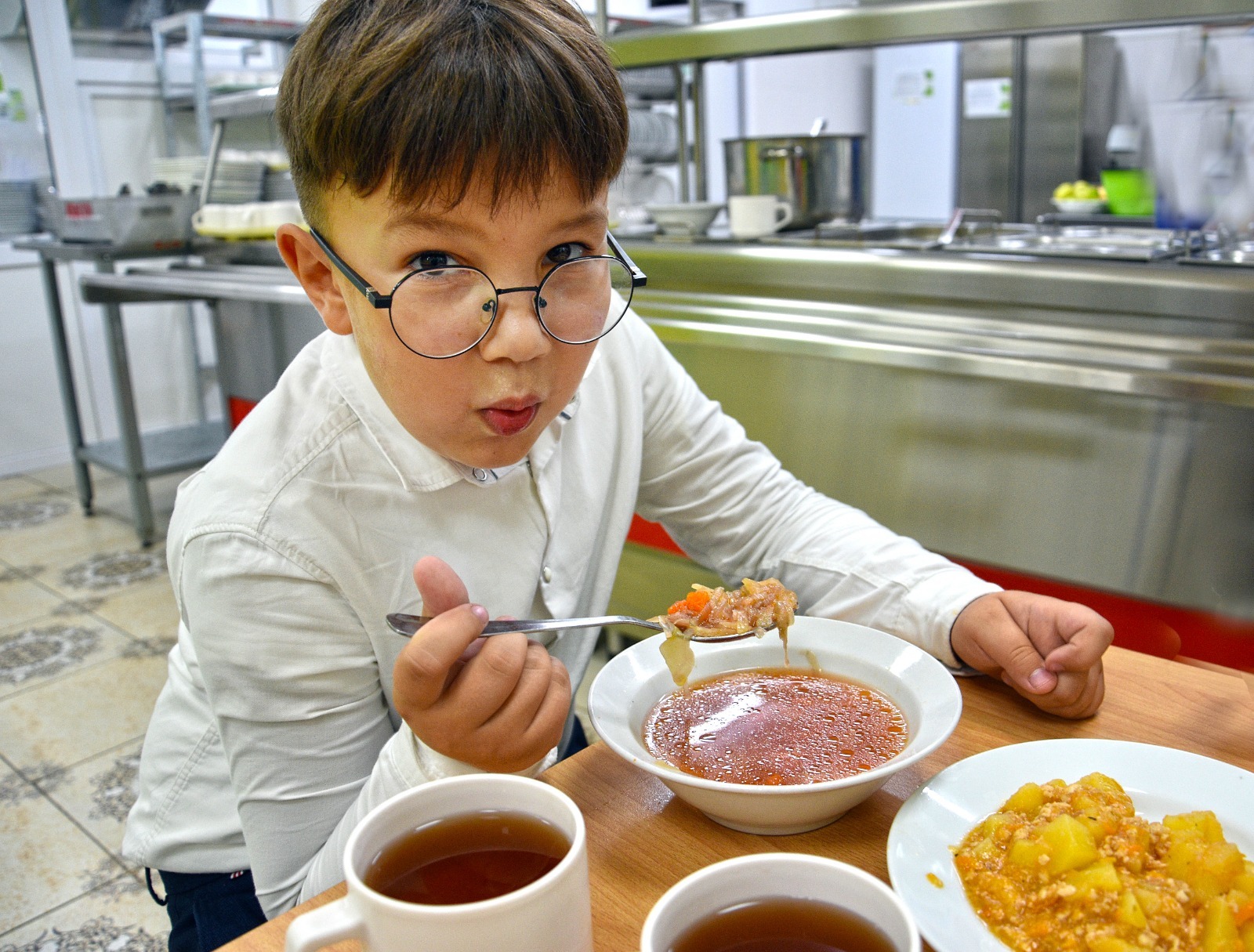 - Мне очень нравятся школьные обеды. Особенно люблю борщ и макароны с котлетами. В школе мы проводим много времени: учёба, дополнительные занятия, секции. Нам нужна энергия, поэтому мы съедаем всё: и первое, и второе. В столовую ходим с удовольствием.