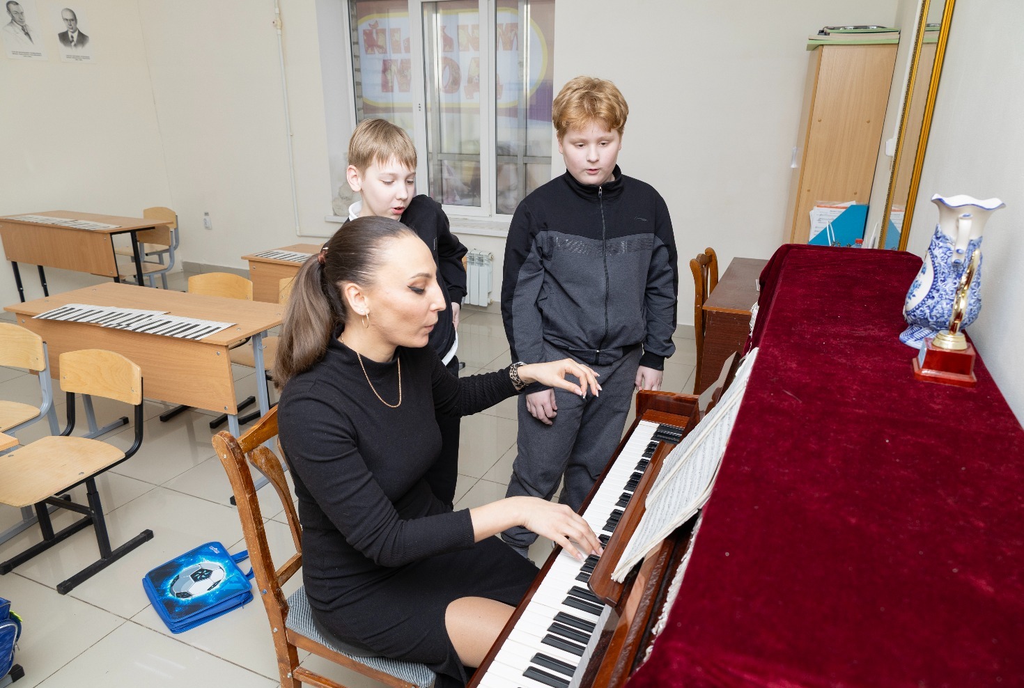 В филиале детской школы искусств села Новая Отрадовка не бывает тихо. Из одного кабинета доносится мелодия фортепиано, из другого – переборы на гитаре, а где-то рядом слышны оживлённые обсуждения: юные художники решают, каким будет их следующий рисунок. Здесь искусство живёт в каждом звуке, линии и цвете.