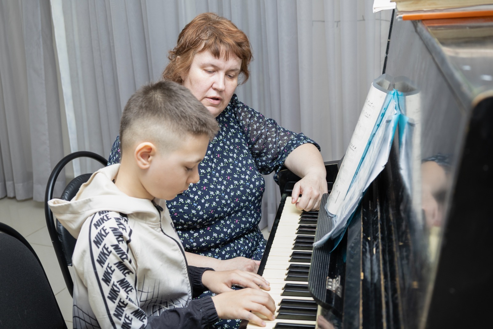 В музыкальных классах звучат гаммы, отрабатываются этюды, разучиваются песни. В фортепианном отделении занимаются 24 ученика.