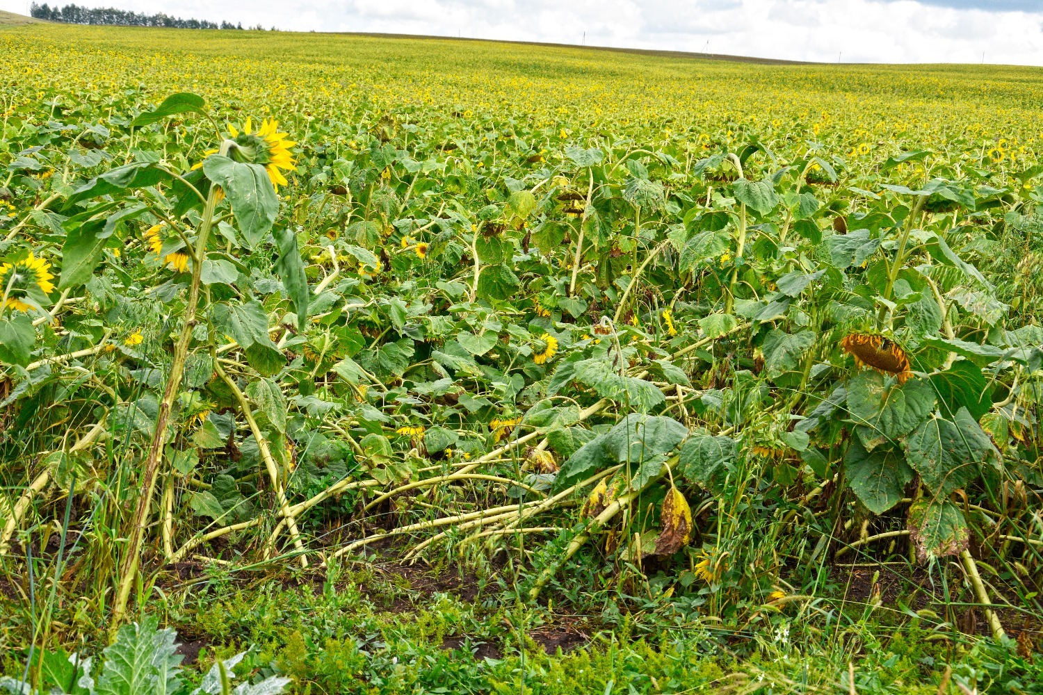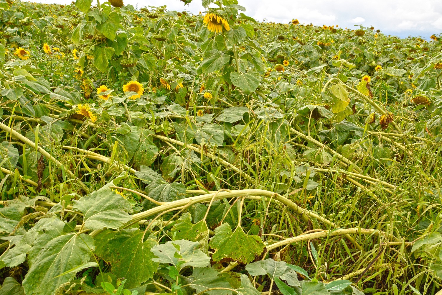 По оценке Долгого, из 520 гектаров подсолнечника полегло 450. Досадно, ведь растение достигло уже 150 сантиметров, корзинки стали наливаться – и вот такая беда. При хорошем раскладе 15-16 центнеров с гектара собрали бы, а теперь – 4-5 ц/га, не более, остальное останется на земле, убрать, по всей видимости, не получится. Ущерб для агрария просто колоссальный.
