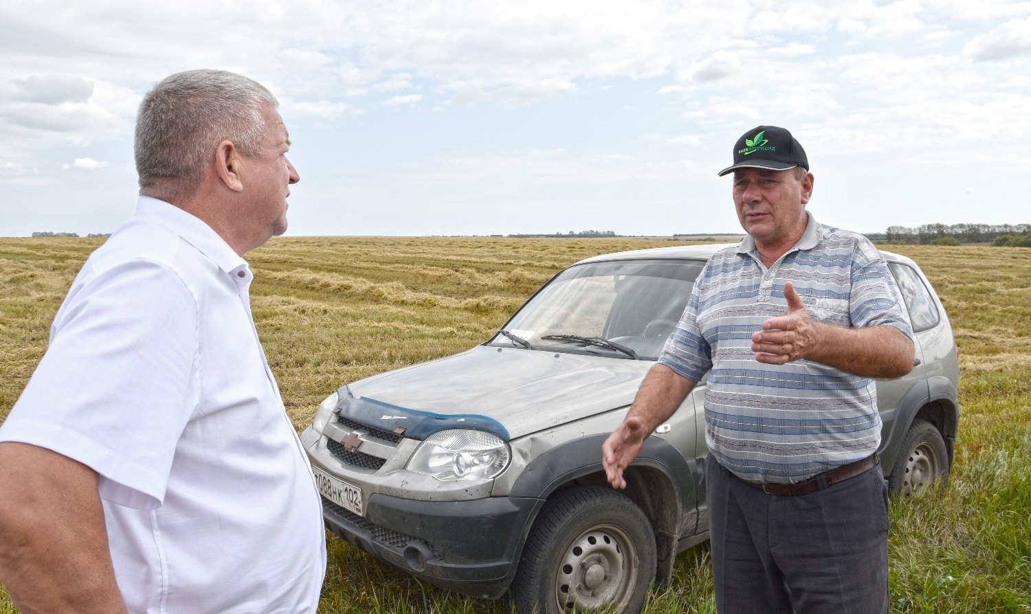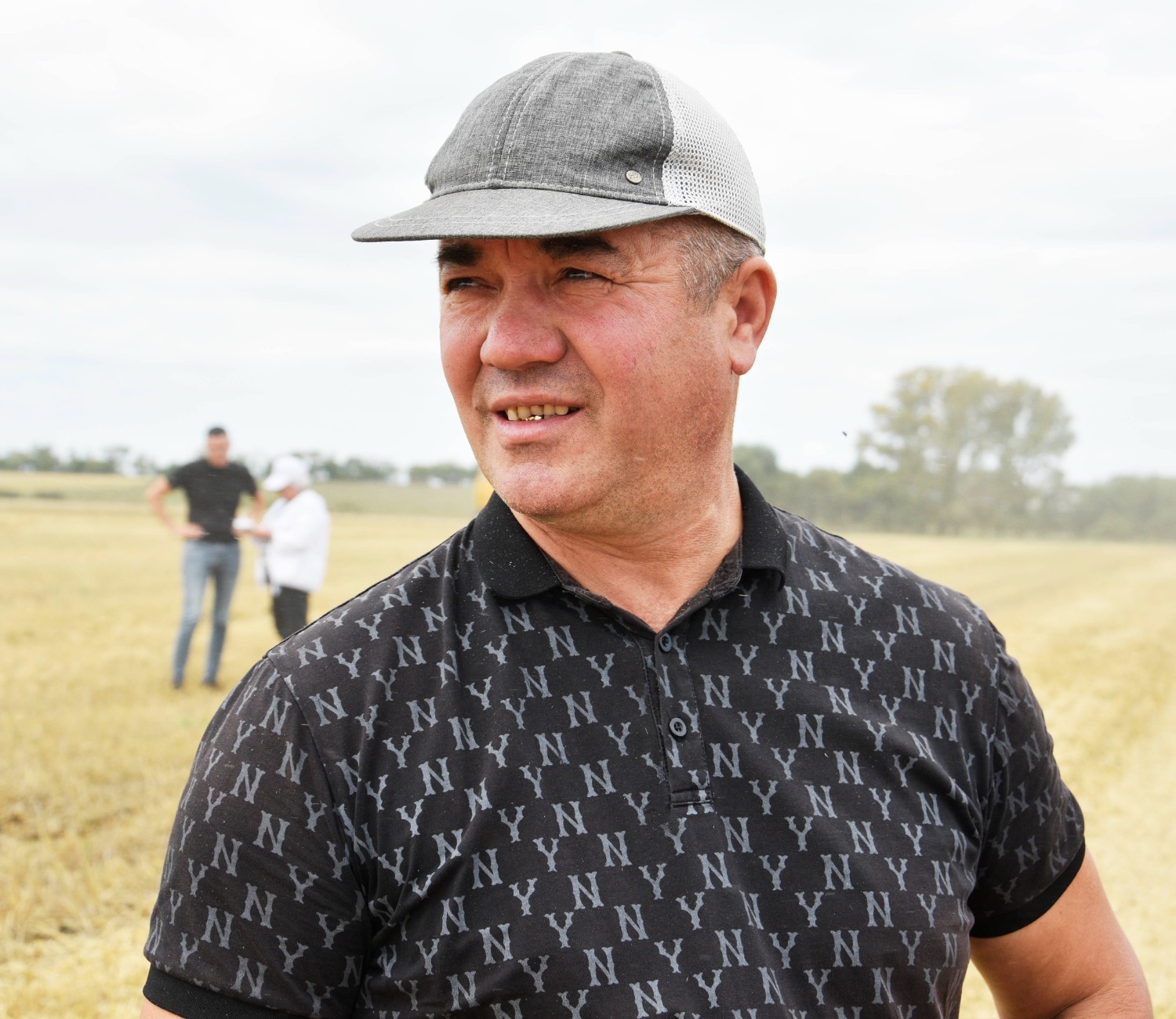 На ячменном поле близ деревни Бегеняш нас встретил управляющий Первомайским отделением Марс Шарипов.