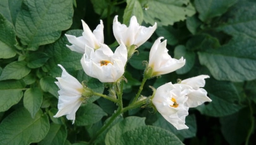 Июль – время цветения этой культуры. Здесь следует учитывать, что обильное цветение – признак начала образования столонов, новых клубней.