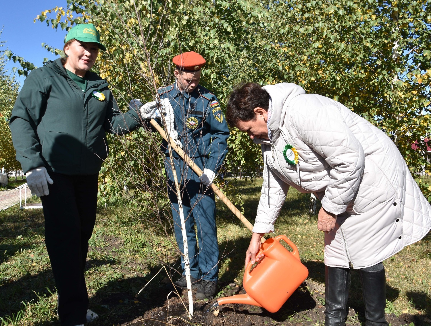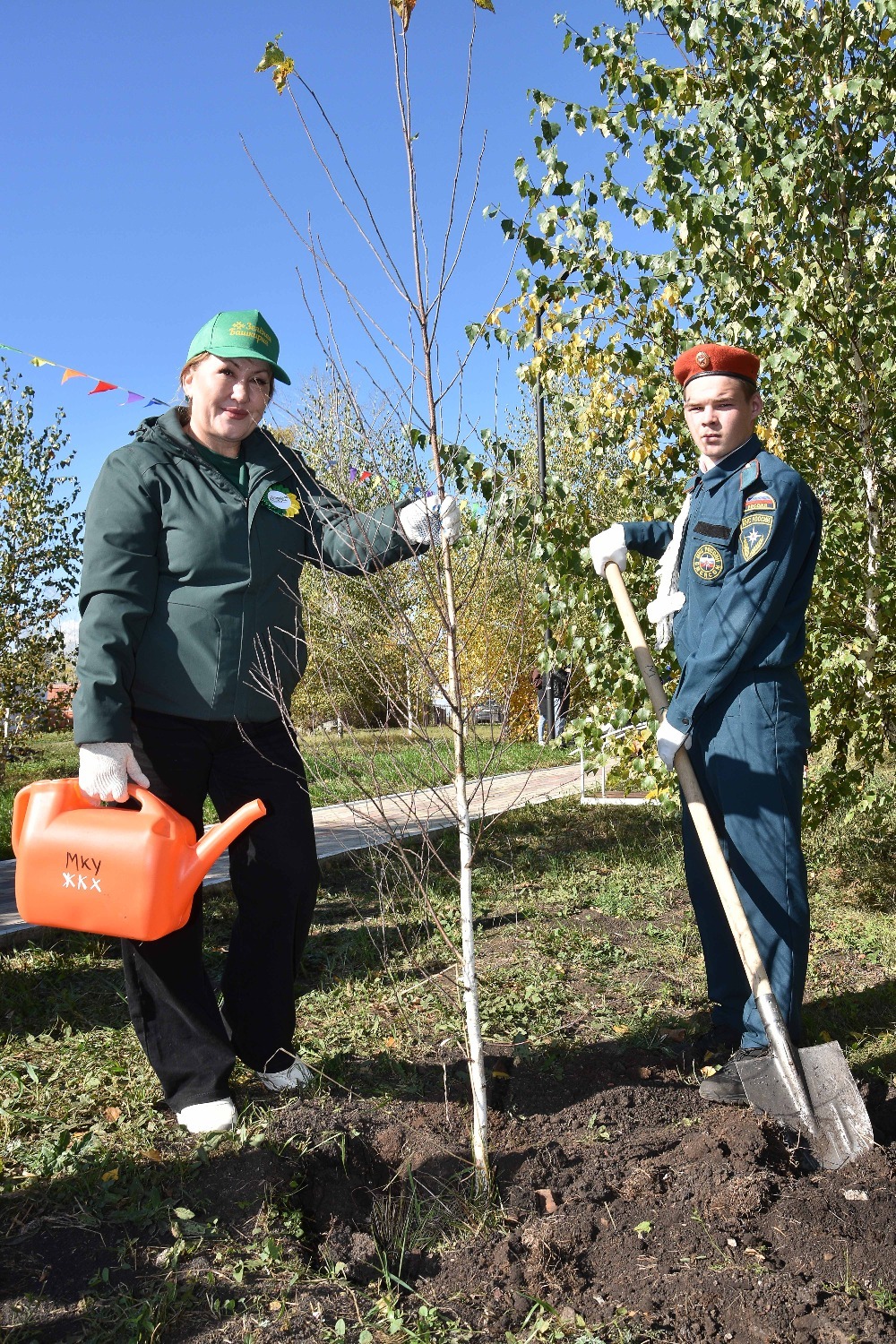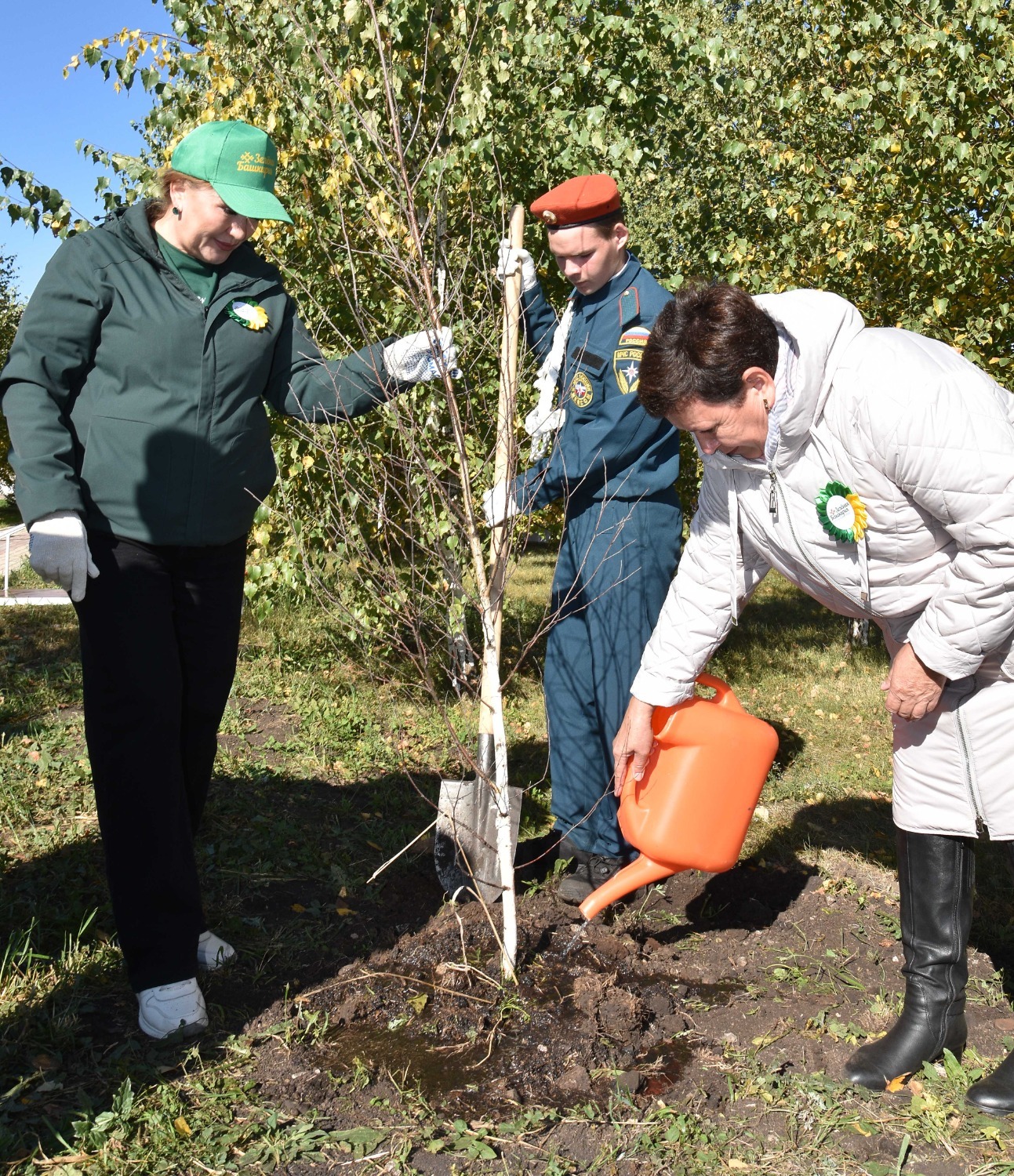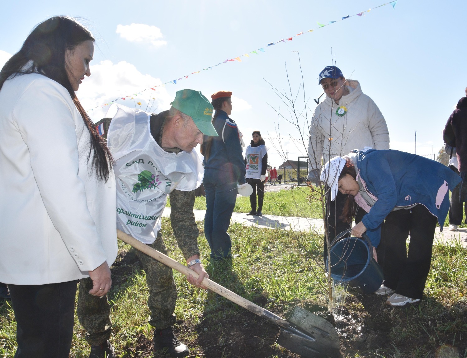 Открытие сквера отдыха в Преображеновке состоялся в рамках акции «Зелёная Башкирия» – после торжественной части всех присутствующих пригласили на посадку новых саженцев. Всего по периметру детской площадки было высажено 95 берёзок, ровно столько, сколько лет исполнилось в этом году родному Стерлитамаксому району!