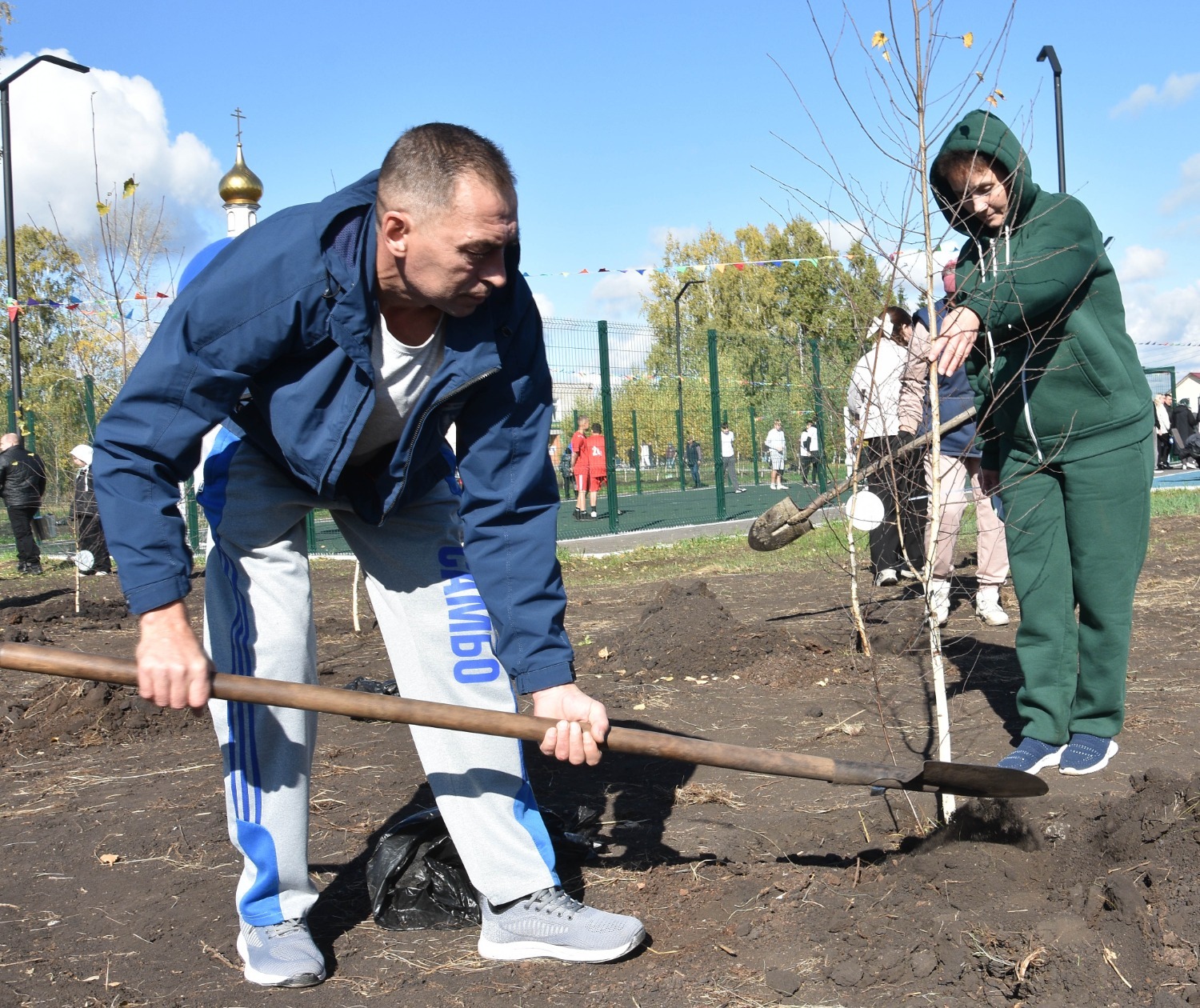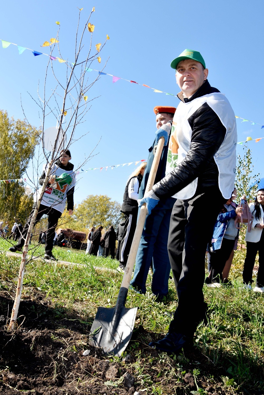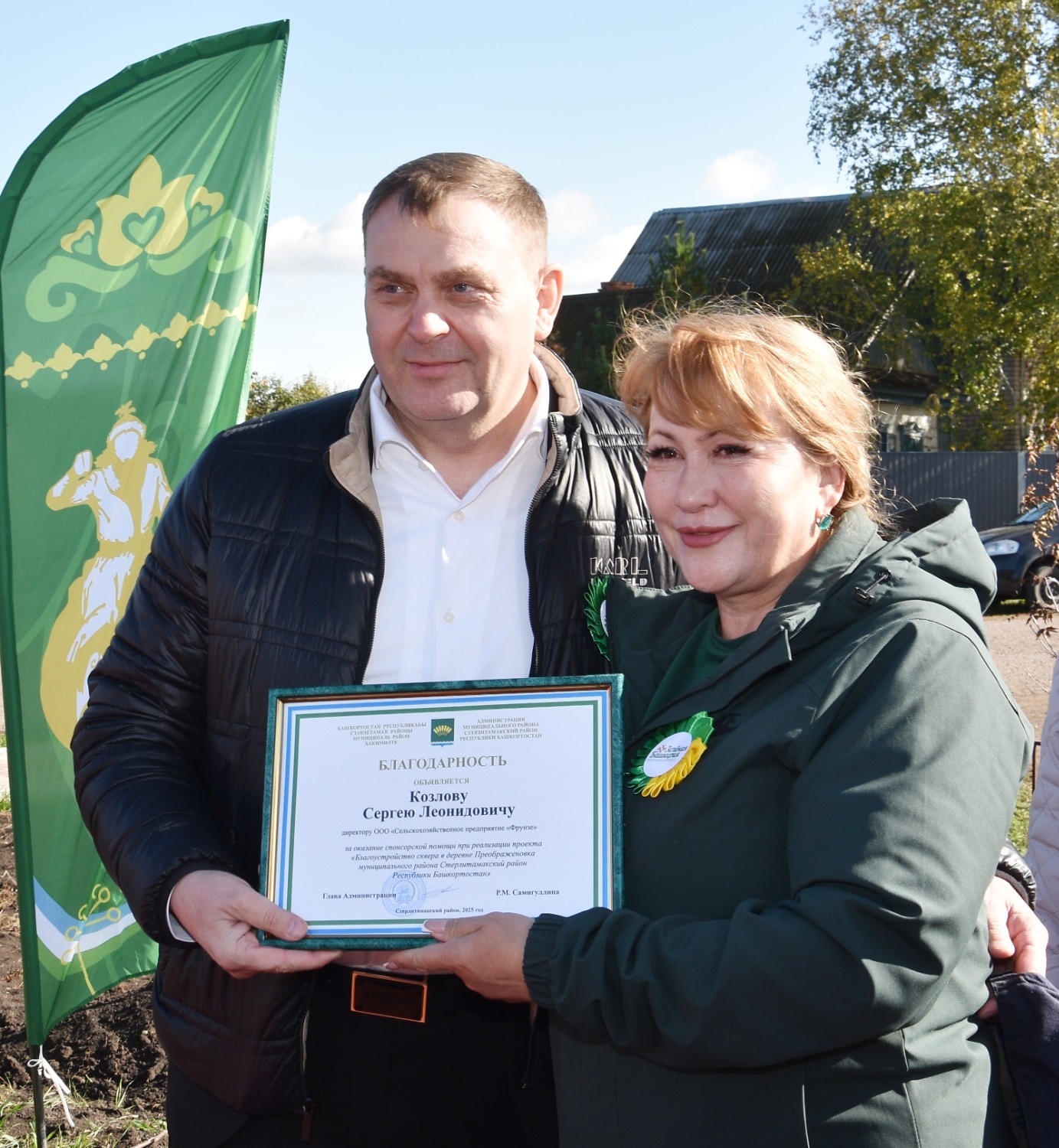 Открытие сквера отдыха в Преображеновке состоялся в рамках акции «Зелёная Башкирия» – после торжественной части всех присутствующих пригласили на посадку новых саженцев. Всего по периметру детской площадки было высажено 95 берёзок, ровно столько, сколько лет исполнилось в этом году родному Стерлитамаксому району!