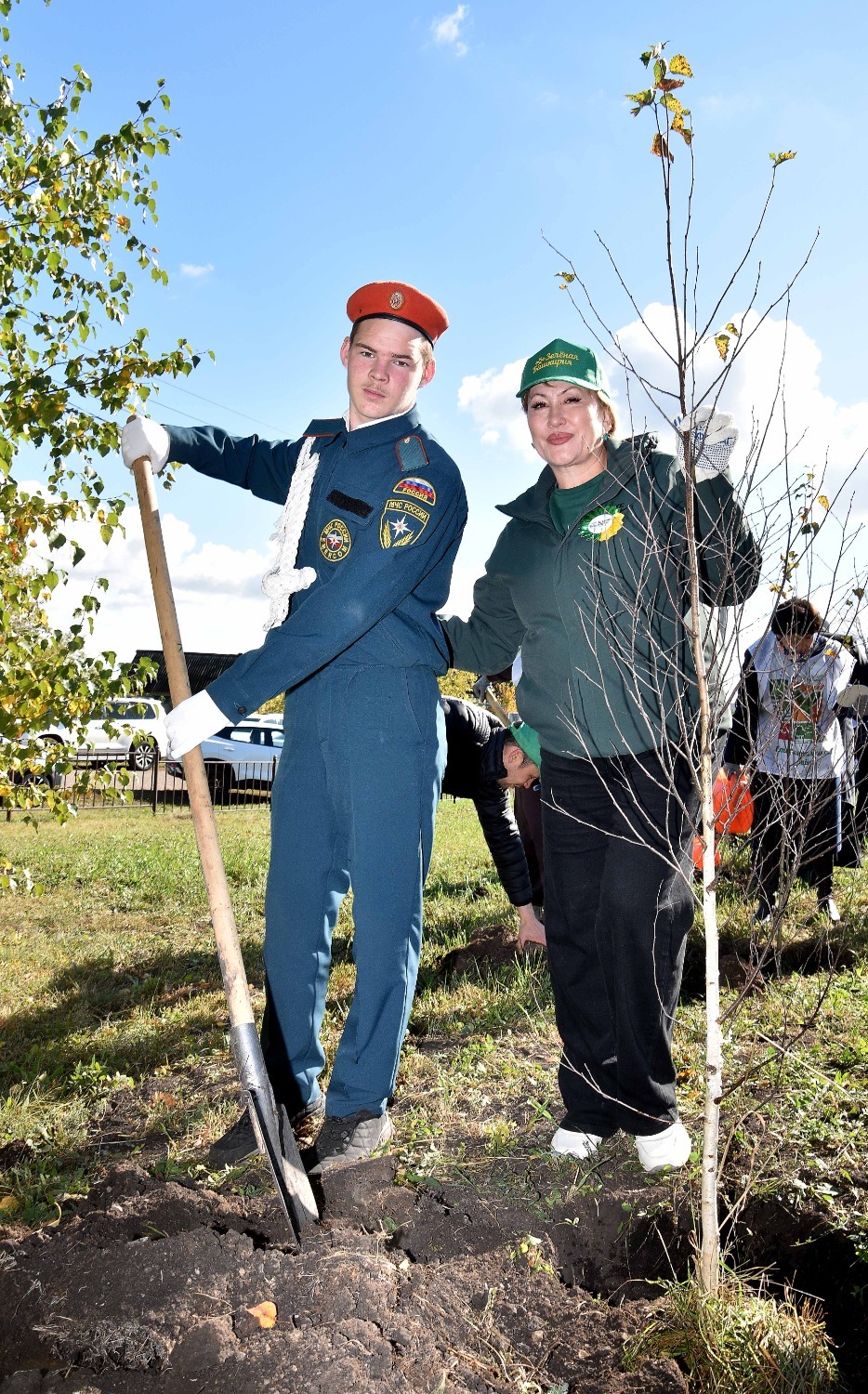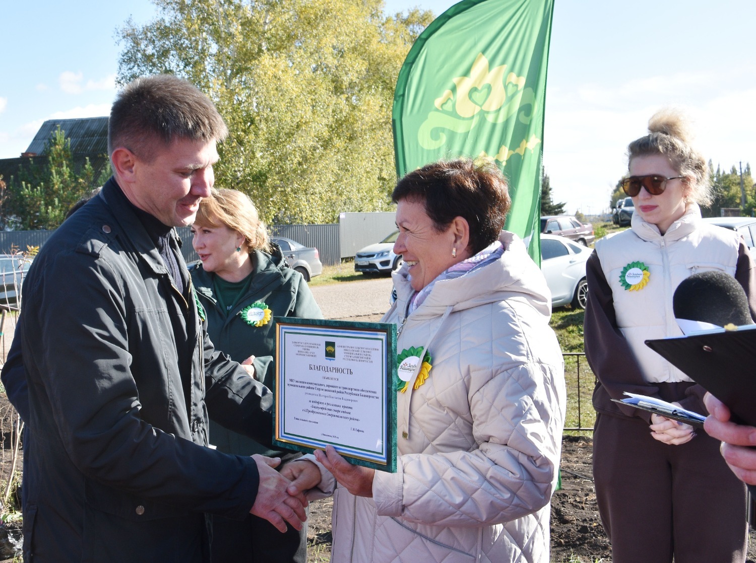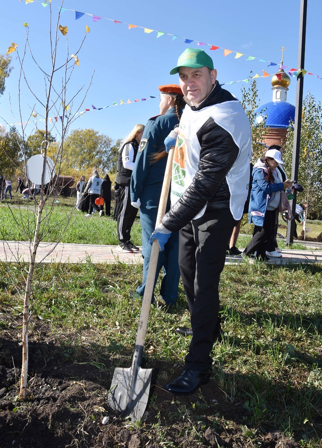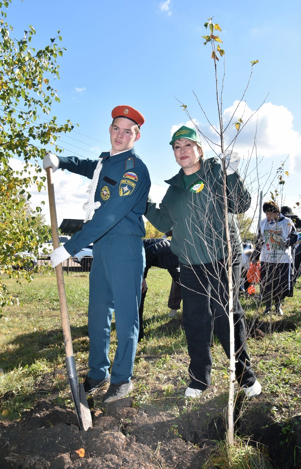 Открытие сквера отдыха в Преображеновке состоялся в рамках акции «Зелёная Башкирия» – после торжественной части всех присутствующих пригласили на посадку новых саженцев. Всего по периметру детской площадки было высажено 95 берёзок, ровно столько, сколько лет исполнилось в этом году родному Стерлитамаксому району!