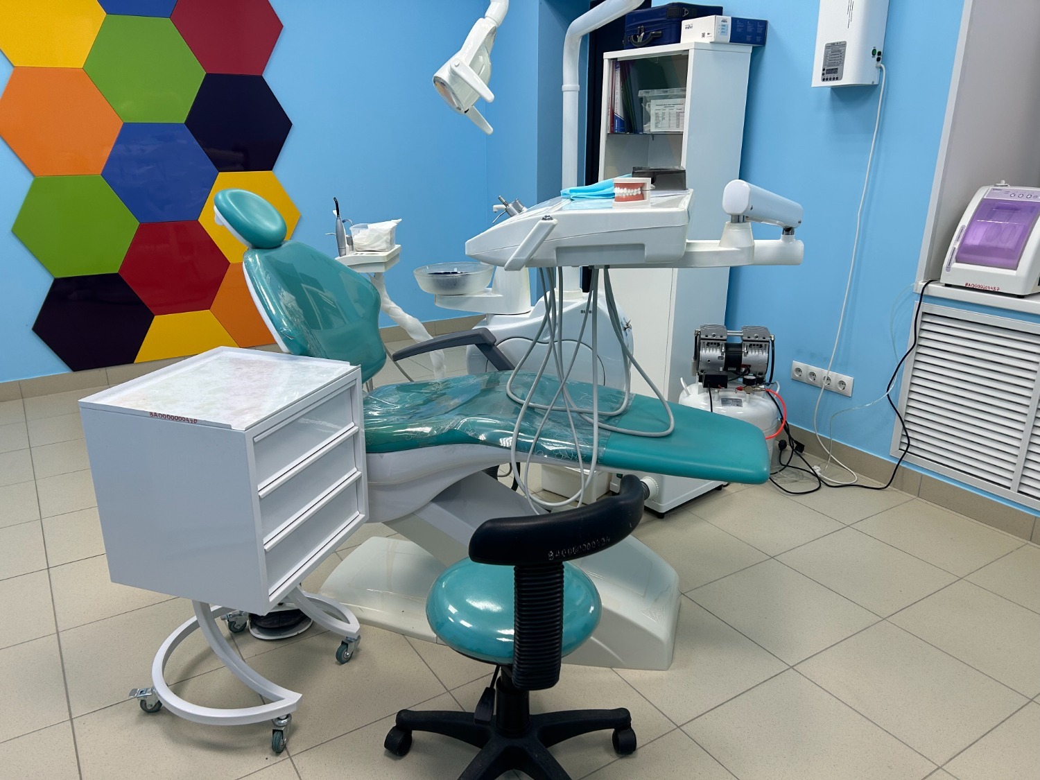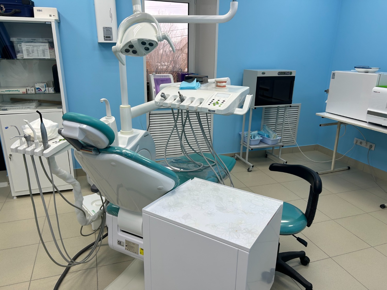 После ремонта была закуплена вся необходимая техника – от стоматологического кресла и инструментов до современных материалов и медикаментов для лечения зубов. Таким образом, кабинет стал полноценным медицинским центром, где есть всё для качественного приёма пациентов.