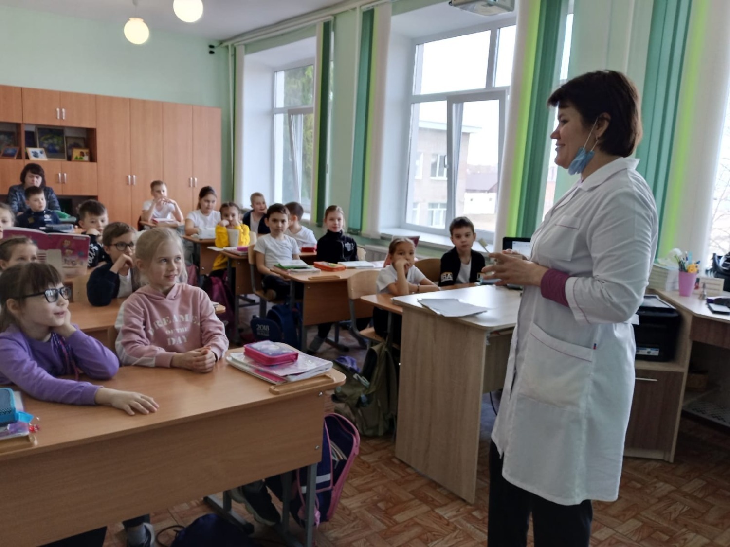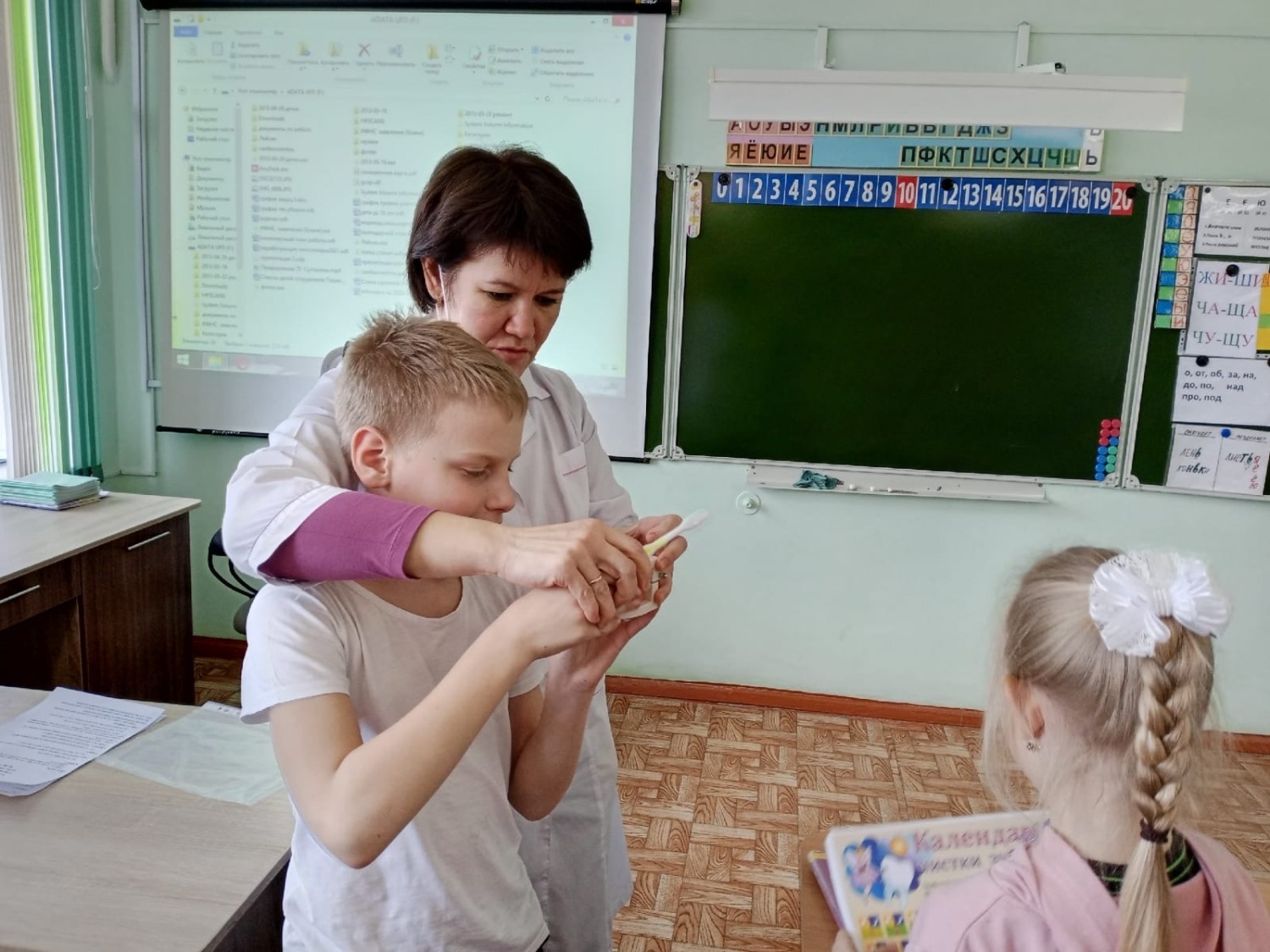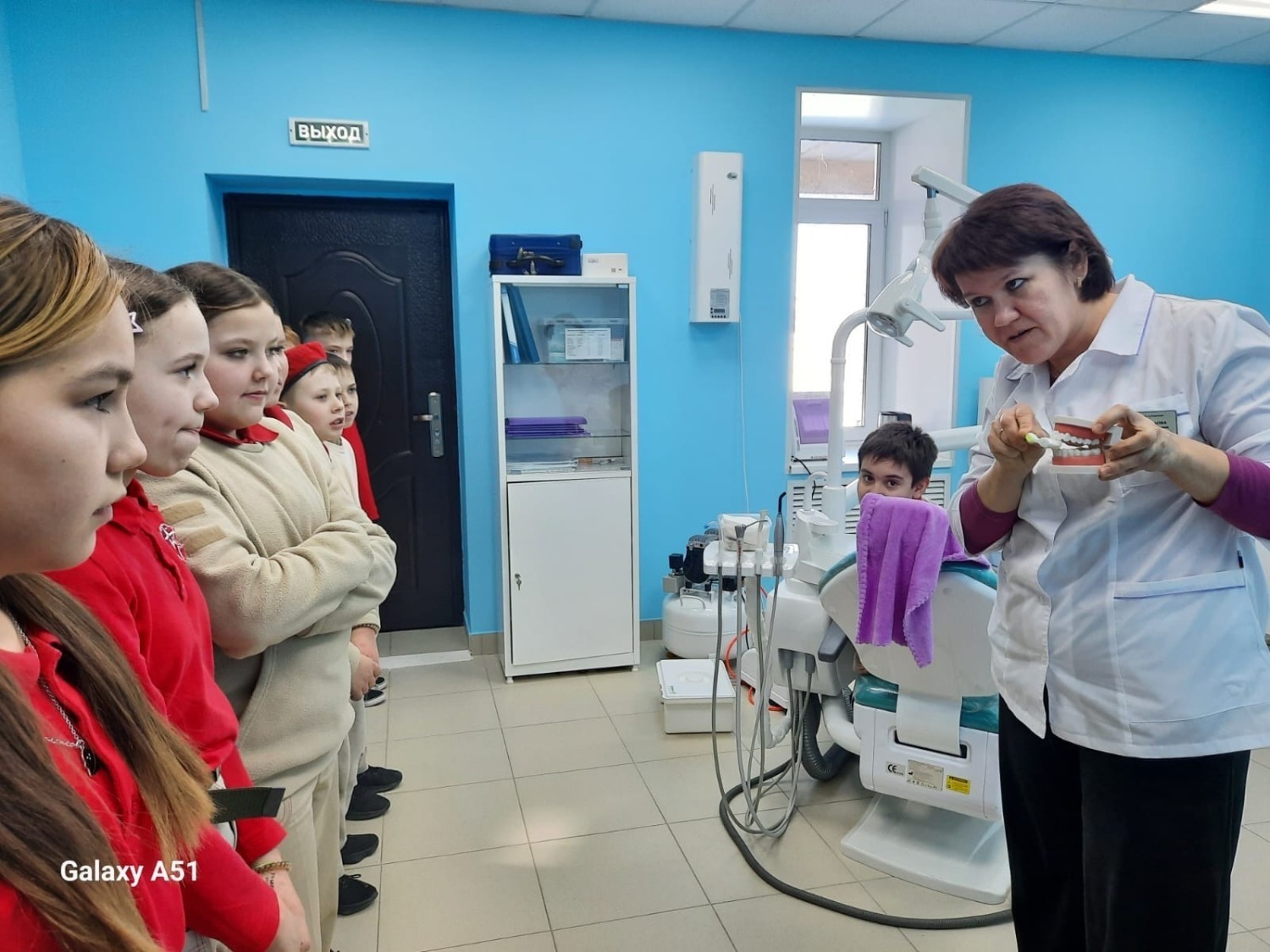 Приём ведёт врач-стоматолог Лейсан Исмагилова, которая приезжает в школу дважды в неделю – по вторникам и четвергам. Она не только опытный специалист, но и человек, умеющий найти подход к каждому ребёнку.